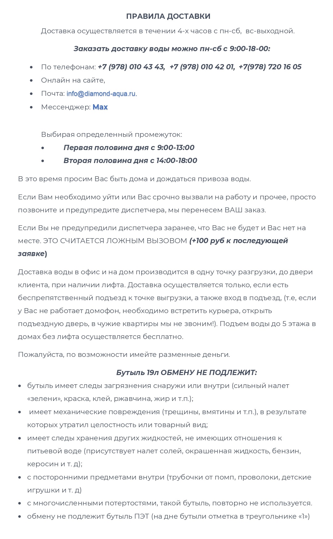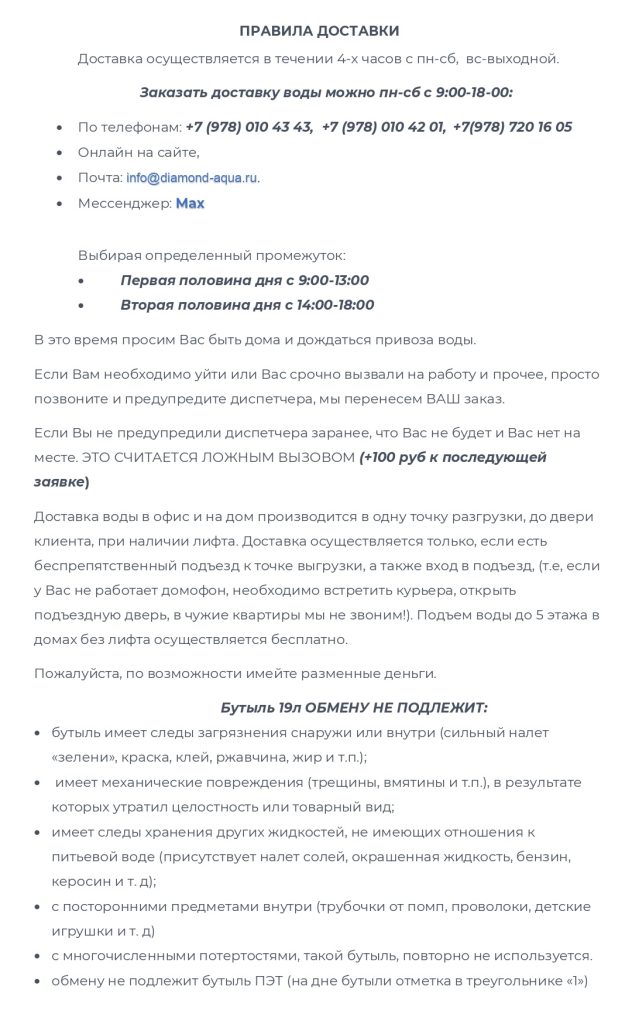 Свяжитесь с нами: info@diamond-aqua.ru